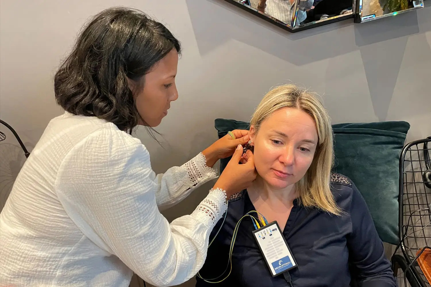 - Deux capteurs posés sur le crâne et trois sur les oreilles permettent au système de mesurer et d’analyser l’activité corticale. Chaque fois qu’une fluctuation est détectée, une microcoupure dans la bande son intervient.